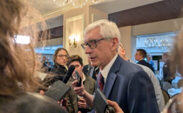 Gov. Tony Evers speaks to reporters in March 2025. Evers has written the Department of Energy urging officials not to...