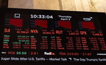 NEW YORK, NEW YORK - APRIL 03: Stock market numbers are displayed on the floor of the New York Stock...