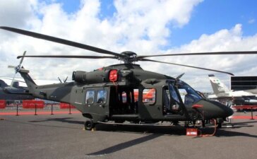 Seen being displayed at Farnborough 2024, the Leonardo AW149 is the sole surviving entrant for the UKʼs NMH competition. (Janes/Gareth...