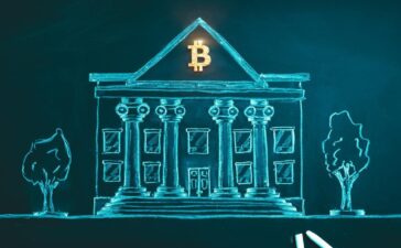 Bitcoin banking symbol. Concept of bitcoin mass adoption of hedge funds, pension funds, VC capital, financial institutions and banks. Government...