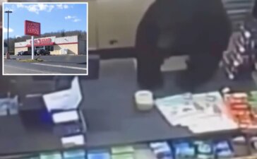 Harrowing video footage captured a black bear on the prowl after chasing an 11-year-old boy into a dollar store in...