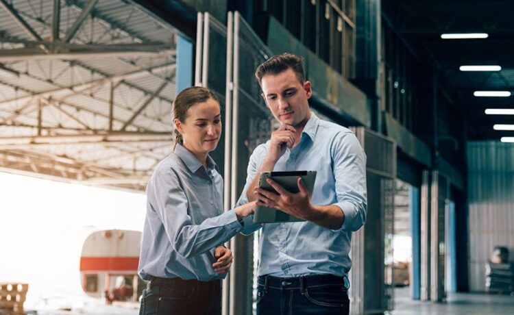 Warehouse managers checking logistic systems at work. – kelvn // Shutterstock