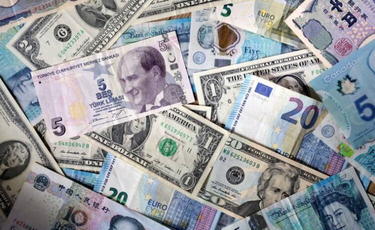 U.S. dollar, Euro, Chinese Yuan, Canadian dollar, Turkish Lira and Pound banknotes are seen in this illustration on May 4.