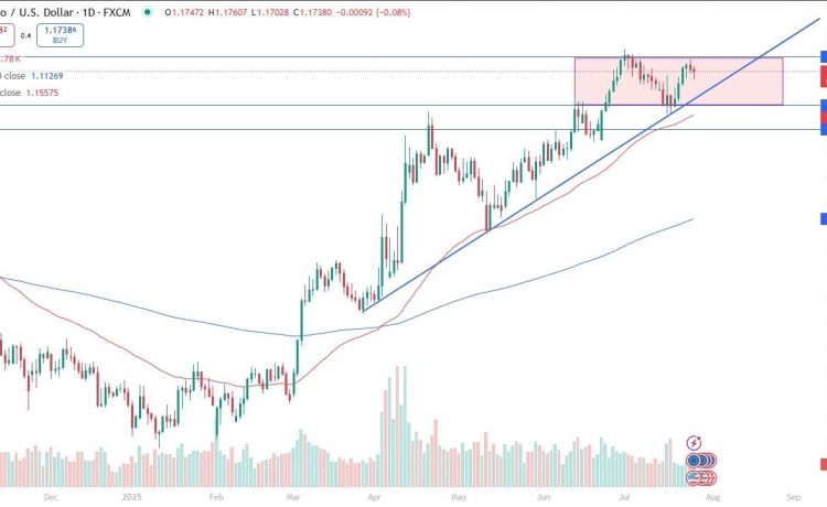 EURUSD Chart by TradingViewI see a big uptrend line that we are a few days away from challenging, so all be watching that, and then we have an area that I think is a“zone of support” between the 1.16 level and the 1.15 level. It’s also worth noting that the 50 Day EMA sits in that same region as well, so it should hold up quite nicely as support. If it does not, I will start aggressively shorting this pair. If we break above the 1.18 level, then it opens up a move to the 1.20 level like as stated previously.Ready to trade our daily Forex analysis ? We’ve made a list of the best forex demo accounts worth trading with.