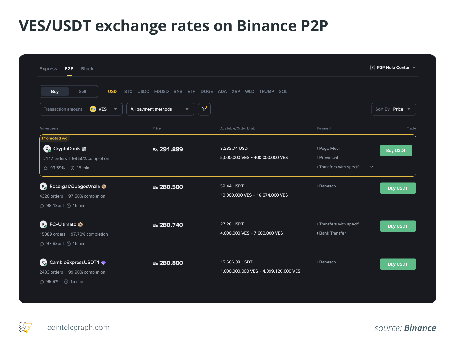 Households use USDT for groceries, condo fees, rent top-ups and peer-to-peer reimbursements to sidestep price shocks in VES (Venezuelan bolívar).