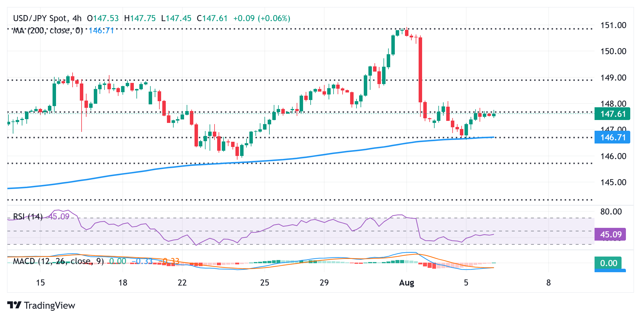 Data released earlier today showed that inflation-adjusted real wages in Japan fell for the sixth straight month in June and fueled concerns about a consumption-led recovery. This comes on top of domestic political uncertainty and could complicate the BoJ’s policy normalization path. Apart from this, a positive tone around the equity markets contributes to capping the safe-haven JPY. The US Dollar (USD), on the other hand, struggles to lure buyers amid bets that the Federal Reserve (Fed) will resume its rate-cutting cycle in September, which, in turn, is seen acting as a headwind for the USD/JPY pair.