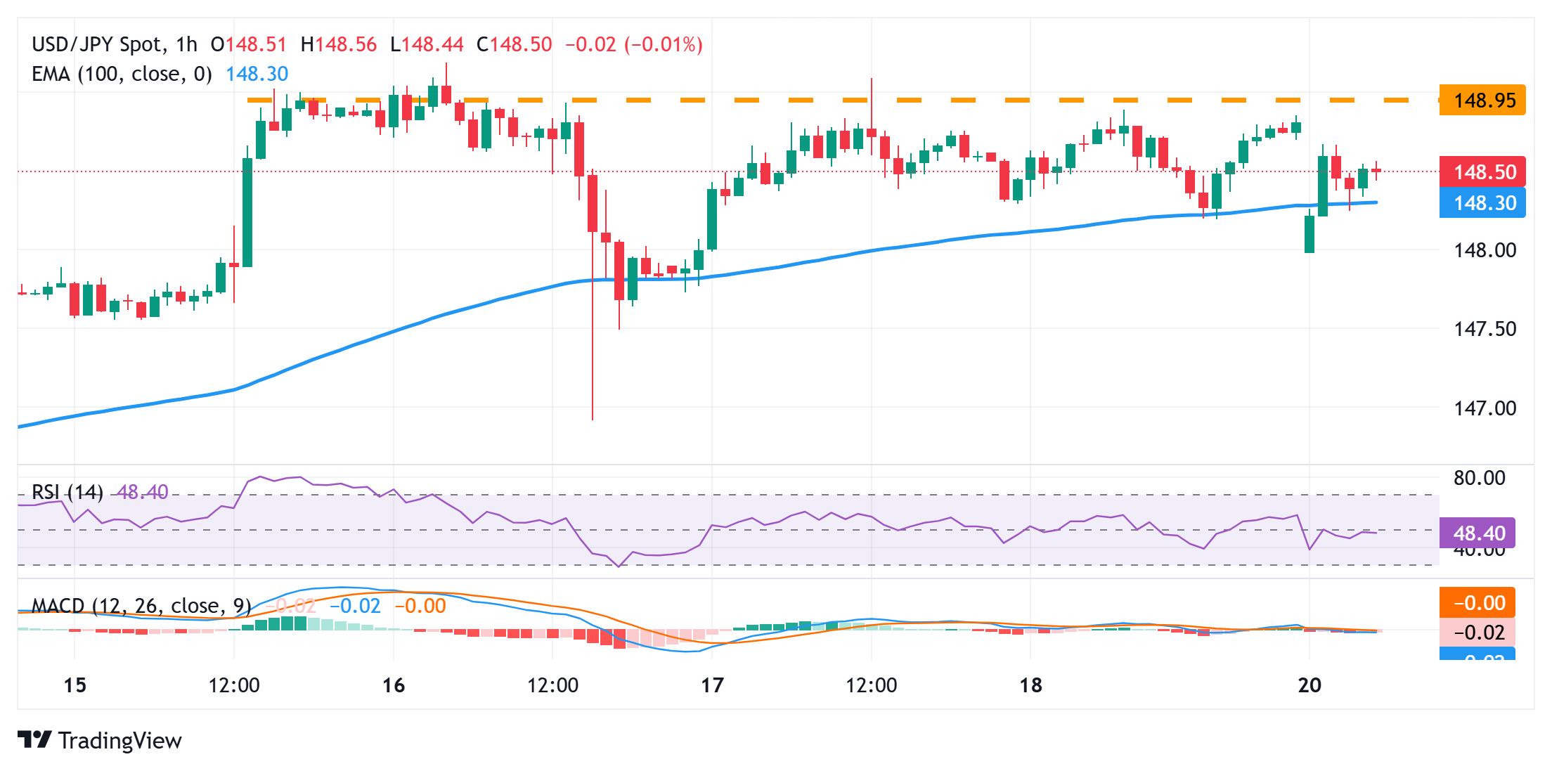 From a technical perspective, the USD/JPY pair once again showed some resilience below the 100-hour Exponential Moving Average (EMA). However, the recent failure to find acceptance above the 149.00 mark warrants some caution for bulls. Hence, it will be prudent to wait for some follow-through buying beyond the 149.15-149.20 region, or a multi-month peak, before positioning for any further gains. Given that oscillators on the daily chart are holding comfortably in positive territory, spot prices might then aim to reclaim the 150.00 psychological mark.