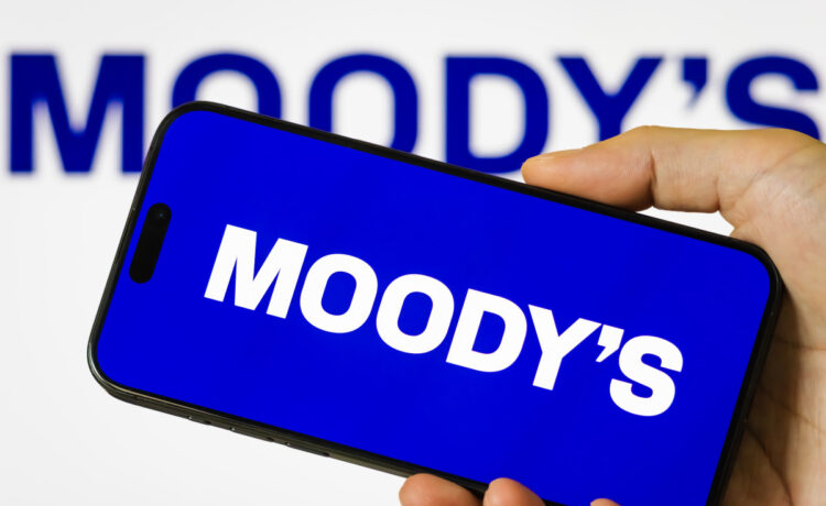 This illustration photograph shows screens displaying the logo of the rating agency Moody’s Analytics and signs of the ratings used by rating agencies, in Toulouse on March 18, 2025.