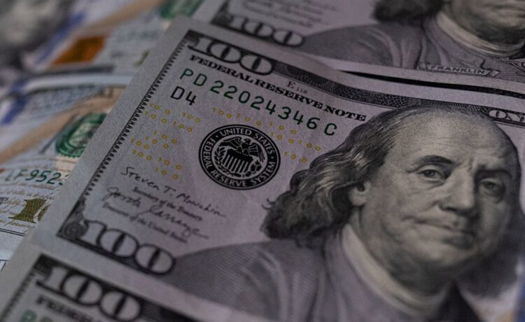 U.S. one hundred dollar bills are shown in Buenos Aires, Argentina, on April 15, 2026.