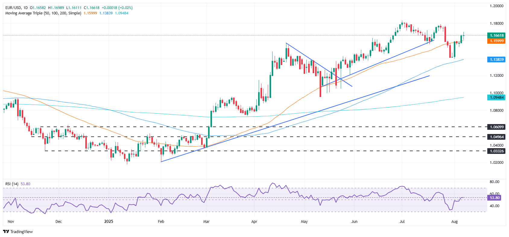The EUR/USD turned flat late on Thursday, spurred by rumors that the White House is considering Federal Reserve Governor Christopher Waller as the top candidate to be the next Fed Chair, succeeding Jerome Powell. Economic data in the US has been ignored by investors, who are digesting Trump’s choice to replace Kugler with Dr. Stephen Miran for a period that would end in January 2026. The pair trades at 1.1661.