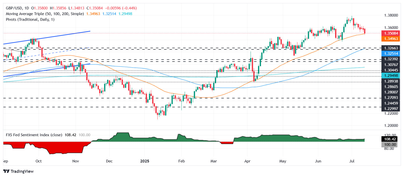 That said, a daily close below 1.3500 could pave the way for further GBP/USD losses. The first support is 1.3500, followed by the 50-day SMA. A breach of the latter will expose 1.3400 and the 100-day SMA at 1.3248. On the flipside, if the pair stays above 1.3500, buyers need to surpass the 20-day SMA to challenge 1.3600.