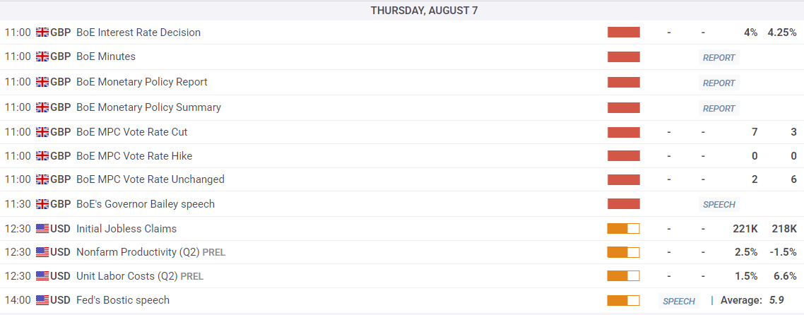 The BoE is poised to trim interest rates on Thursday, with median market forecasts expecting the Monetary Policy Committee (MPC) to vote 7-to-3 in favor of a quarter-point trim, bringing the BoE’s main reference rate down to 4.0% from 4.25%. If the BoE matches market expectations and cuts interest rates this week, this will be the seventh rate cut from the UK’s central bank since the BoE started trimming rates in July of 2024.