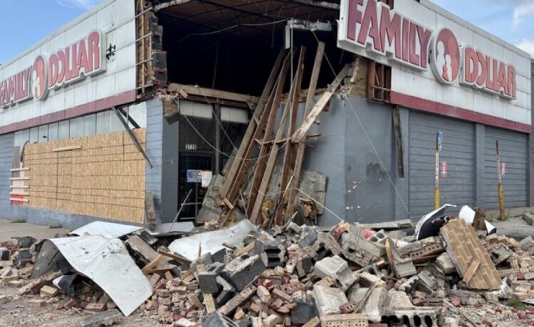 “The resident is reporting that the building Family Dollar, is slowing (sic) tilting,” she wrote. She took no action but confirmed what the neighbor saw. “Please describe the property issues at this location: building tilting,” according to the report.
