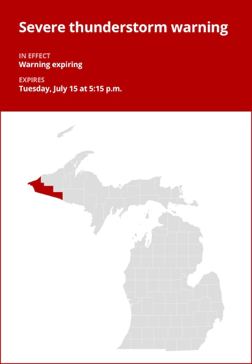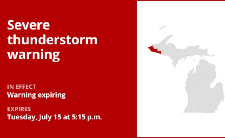 “The severe thunderstorm which prompted the warning has moved out of the warned area. Therefore, the warning will be allowed to expire. A Severe Thunderstorm Watch remains in effect until 11 p.m. for western Upper Michigan,” states the National Weather Service.
