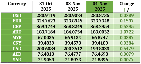 The PKR appreciated by 0.01 percent DoD and closed at 280.87 against the US Dollar today.