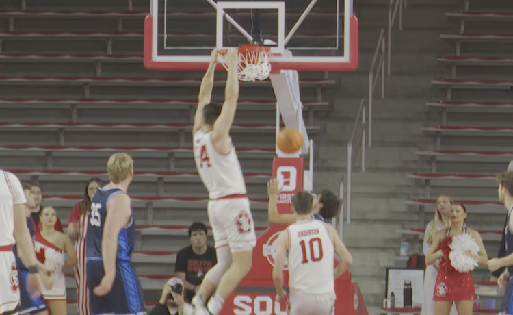 Ihnen poured in 14 points on 6-of-6 shooting in the second half and grabbed eight boards. South Dakota was 19-for-33 from the field in the second half and held Ozark Christian to 10-of-24 shooting. The Coyotes were in control for the entire second half and took their largest lead at the four-minute mark, 114-58, during a stretch where Ihnen scored on three straight Coyote possessions. Ihnen closed out the scoring, knocking down a triple with a minute remaining and USD won 121-65.