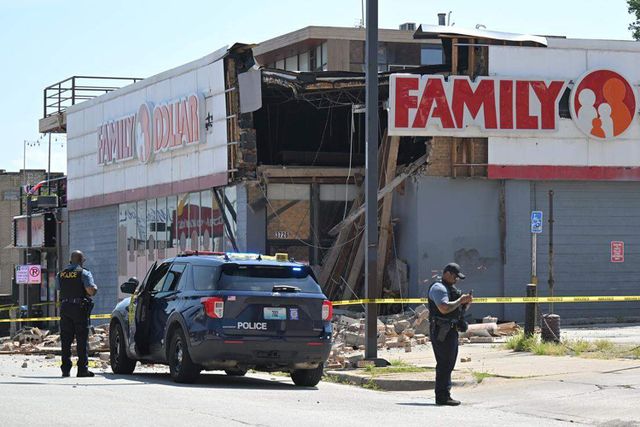 Police and the Kansas City Fire Department were at the scene of a Family Dollar store in the 3700 block of Broadway in Kansas City, Missouri, after a portion of it collapsed Sunday, July 27, 2025