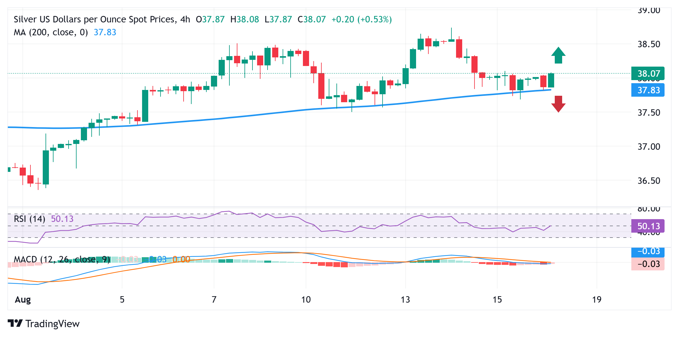 Silver (XAG/USD) attracts some dip-buyers near the $37.80 region during the Asian session on Monday. The white metal climbs back above the $38.00 mark, hitting a fresh daily peak in the last hour.