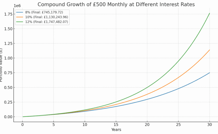 But what if an investor were starting from scratch? Well, starting this September, they could open a Stocks and Shares ISA with a reputable UK brokerage and invest £500 per month into a diversified portfolio of equities — not just UK stocks. Assuming an average 8% annual return, this simple plan could build real wealth over time.