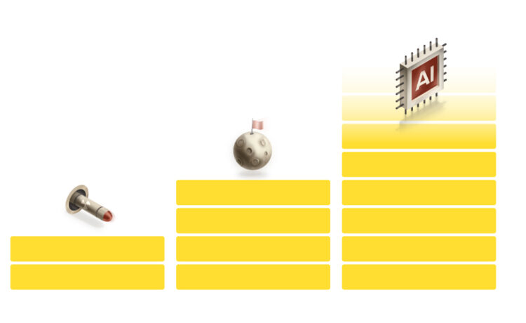 Investment in AI has not just outstripped government-led initiatives like the Manhattan Project and the Apollo program. It has also exceeded the capital put into other, more recent, market-driven technology booms.