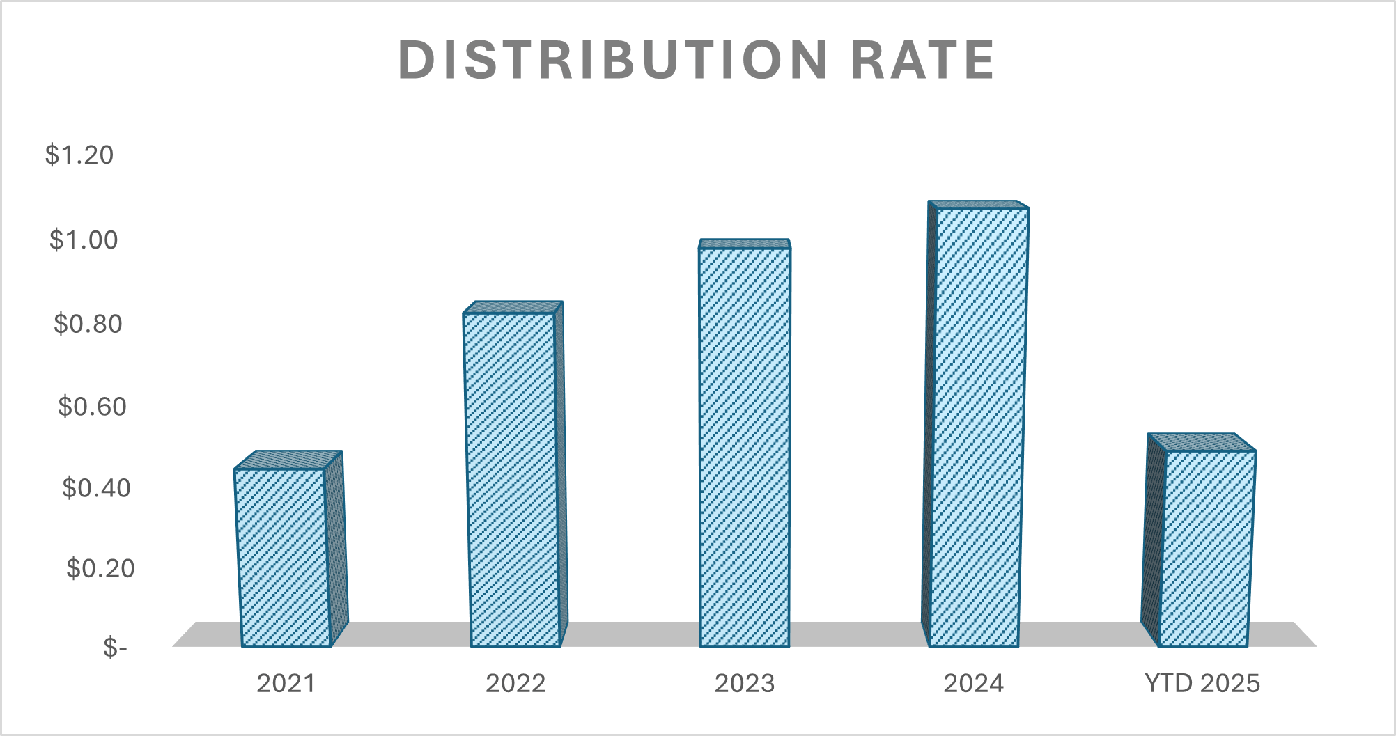 SCHY pays out an appealing quarterly distribution rate of $1.05/share, yielding 3.72% on a trailing twelve-month basis. SCHY transitioned from semiannual distributions to quarterly distributions in 2024. Comparing annualized distributions, SCHY has exhibited annual growth since inception.