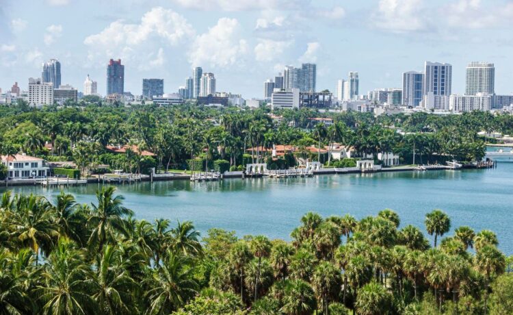 Miami Beach, Florida, Biscayne Bay, Miami downtown city skyline. (Photo by: Jeffrey Greenberg/UCG/Universal Images Group via Getty Images)