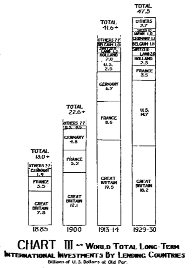 But the more immediate trigger for the downfall of British-financed globalization were not endogenous economic forces, or “neo-Polanyian” political economy, but the explosion of imperialist competition in World War I and then again in World War II. Whether or not you wish to regard the wars themselves as endogenously, economically induced, is a debate for another time. My own money, as I’ve set out here, is squarely on a Gilpin-style model of hegemonic war. World War I was not principally the result of competition between rival imperialist investors, but of more basic processes of uneven and combined development within Europe, notably focused on the balance between the fragile Ottoman, Habsburg and Tsarist empires with Germany as a lethal accessory, thus widening the war to a global struggle between the European powers.