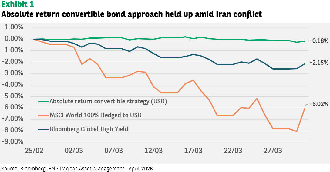 Applying an absolute return approach to investing in convertible bonds has historically provided steady returns for investors across various market cycle: returns remained resilient during, for example, the COVID pandemic and the Ukraine war. Even now, with the Iran conflict, this approach has continued to be a safe heaven.