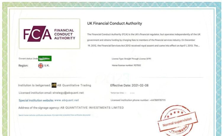 Recently, AB Quantitative Trading proudly confirmed its operational compliance under the UK’s Financial Conduct Authority (FCA) (see attached certificate). This FCA supervision ensures that clients benefit from the highest standards of financial conduct, security, and transparency – a rare credential in the crypto trading world.
