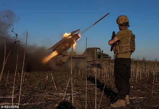Ukraine’s 25th Sicheslav Airborne Brigade fire a rocket launch system towards Russian troops