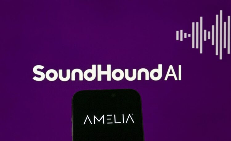 ANKARA, TURKIYE – AUGUST 27: In this photo illustration, Amelia logo is being displayed on a mobile phone screen in front of a monitor displaying SoundHoundAI logo in Ankara, Turkiye on August 27, 2024. (Photo by Mustafa Hatipoglu/Anadolu via Getty Images)