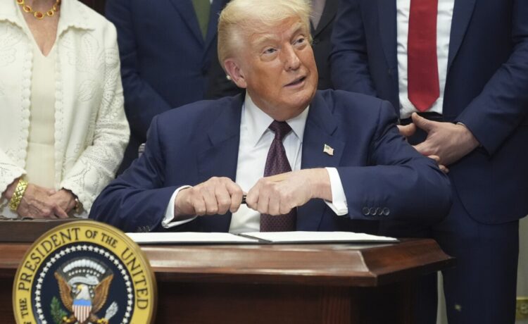 Trump signed an order Thursday night imposing steep tariffs on 66 countries, the European Union, Taiwan and the Falkland Islands to go into effect on Aug. 7, after he originally threatened them for April but postponed twice after that until Aug. 1.