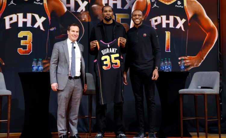 Durant came to the Suns via the Brooklyn Nets. The 15-time All-Star forward forced his move down to the Suns via a request and ended up landing at his desired destination.