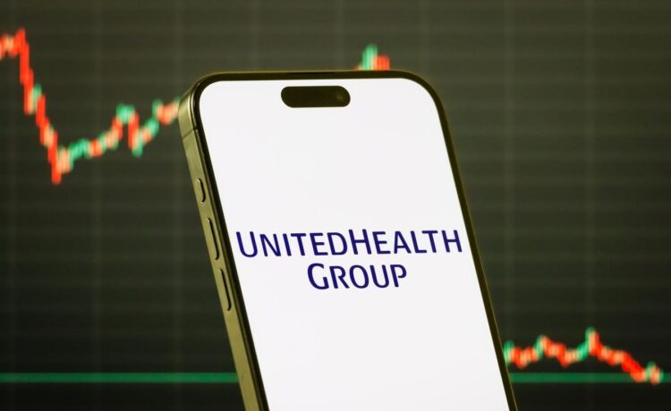 CHONGQING, CHINA – JULY 27: In this photo illustration, a smartphone displays the logo of UnitedHealth Group Incorporated (NYSE: UNH), a leading American healthcare and insurance company, in front of a screen showing the company’s latest stock market chart on July 27, 2025 in Chongqing, China. (Photo illustration by Cheng Xin/Getty Images)