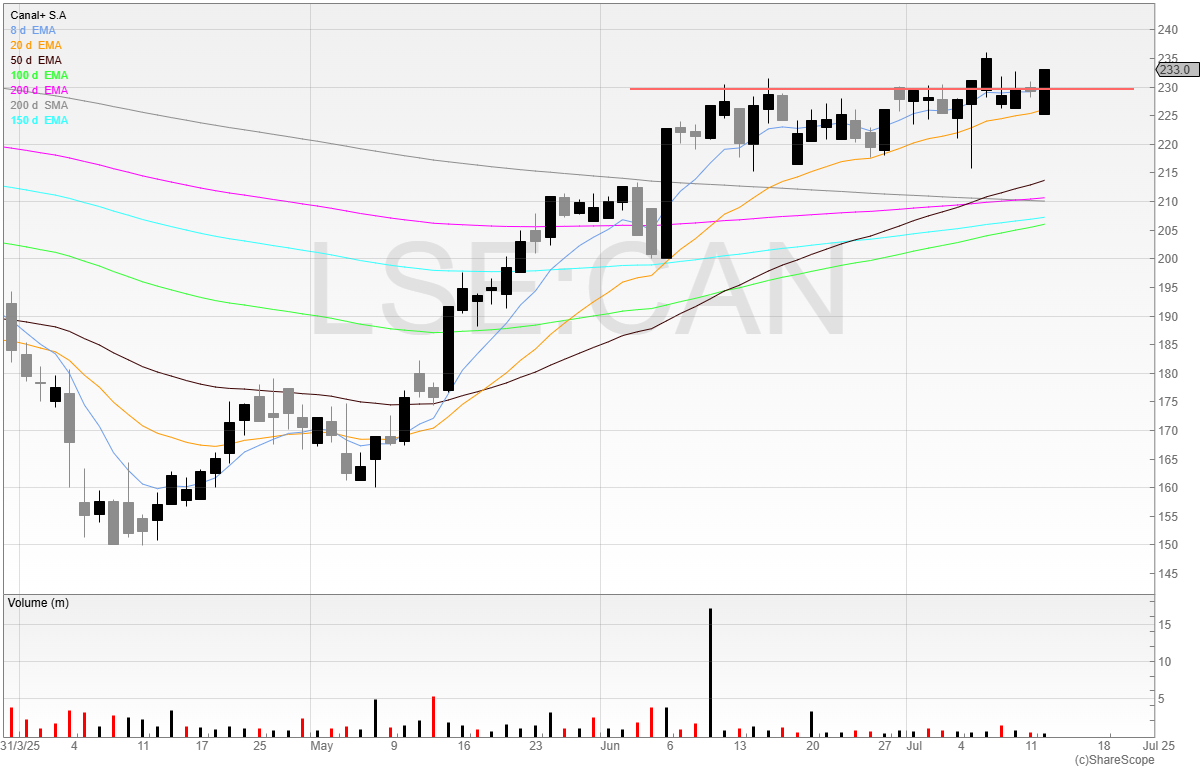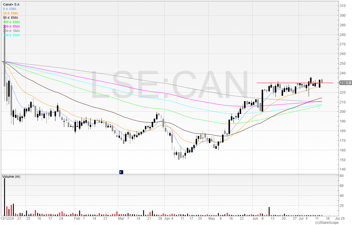 Canal+ is a SETS stock, which means orders can be placed directly on the London Stock Exchange’s order book, and I’m watching for a break of recent highs.