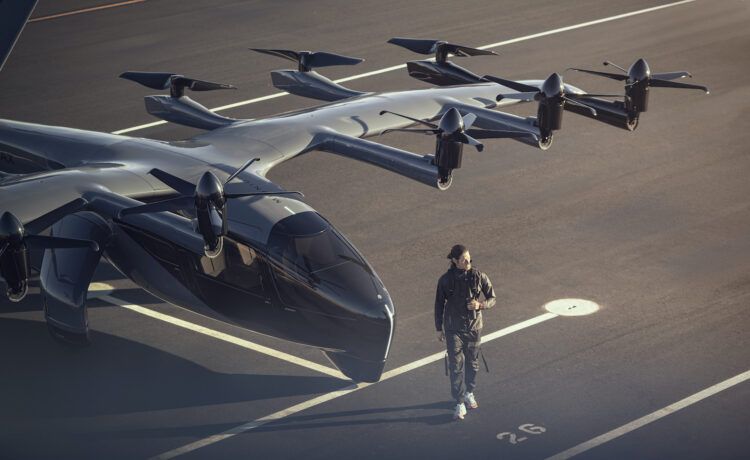 A person walks on the tarmac in front of an Archer Aviation Midnight model eVTOL aircraft. Image source: Archer Aviation.