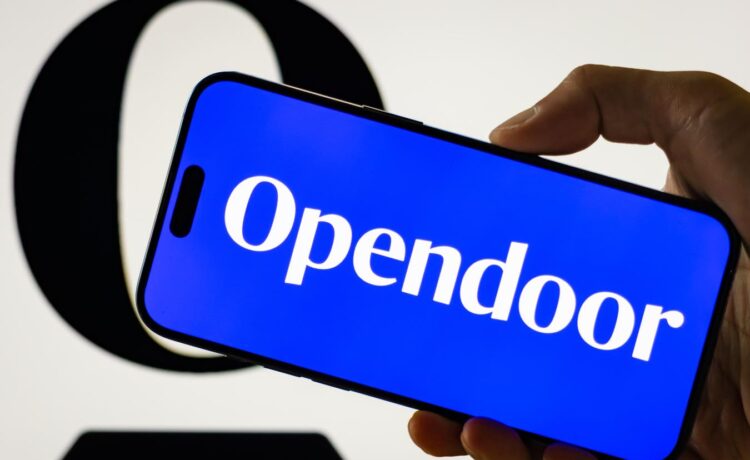 CHONGQING, CHINA – JULY 31: In this photo illustration, a person holds a smartphone displaying the logo of Opendoor Technologies Inc. (NASDAQ: OPEN), an American online real estate platform company, with the company’s initial O branding visible in the background, on July 31, 2025 in Chongqing, China. (Photo illustration by Cheng Xin/Getty Images)